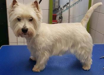 Westie gebadet und geschoren auf Wunsch kürzer |