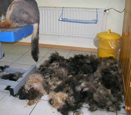...und nachher (komplett entfilzt, gewaschen, geschoren) |