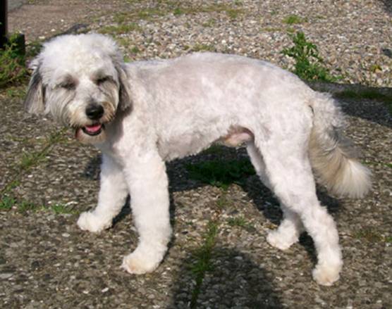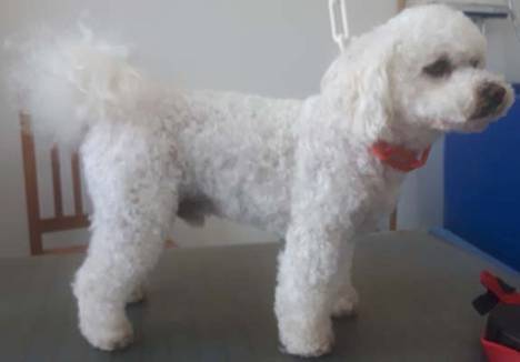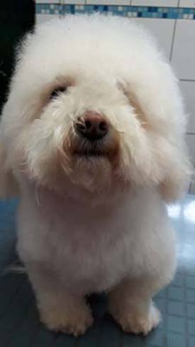 Bolonka Links gewaschen und geföhnt Unten geschnitten ohne waschen Hier schön zu sehen, dass durch gutes waschen und ausföhnen die Locken kurzzeitig verschwinden, wodurch die Frisuren länger halten! |